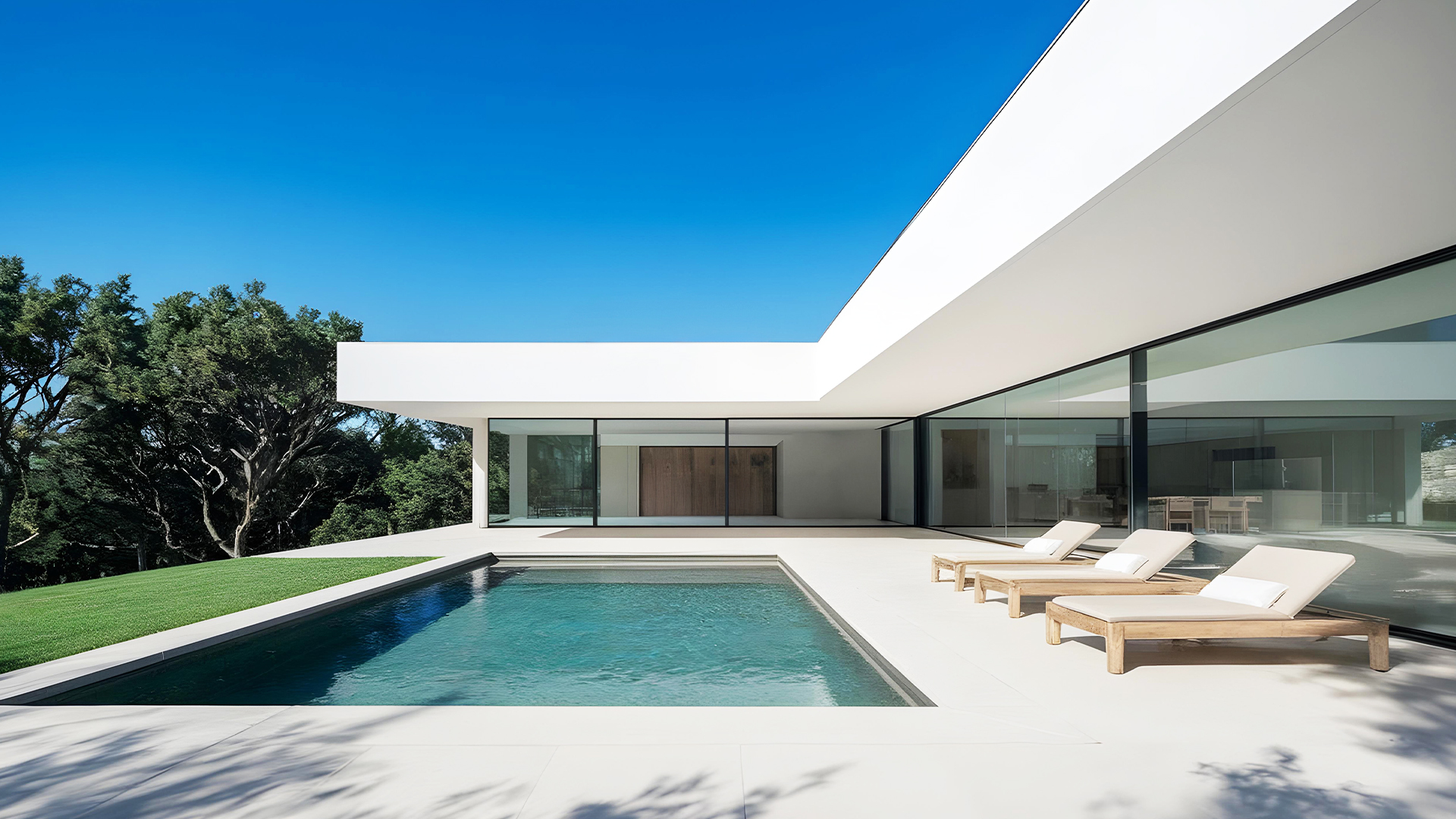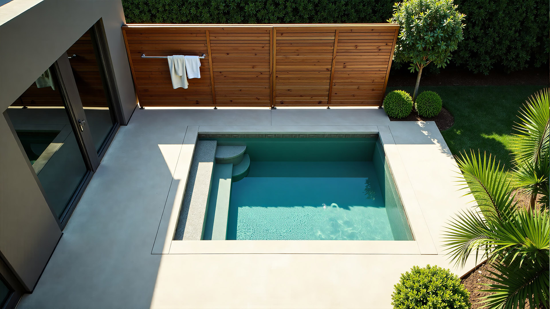 Il est conseillé d’opter pour une piscine compacte, avec des lignes simples, et de travailler l’aménagement autour (terrasse, végétation) pour créer une impression d’espace.